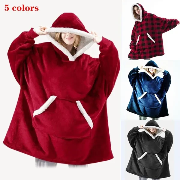 New Fashion Women's and mens Oversized Hoodie Blanket long Sleeves Sweatshirt Plaid Winter Fleece Keep warm Hoody Pocket Loose Female Hooded Sweat