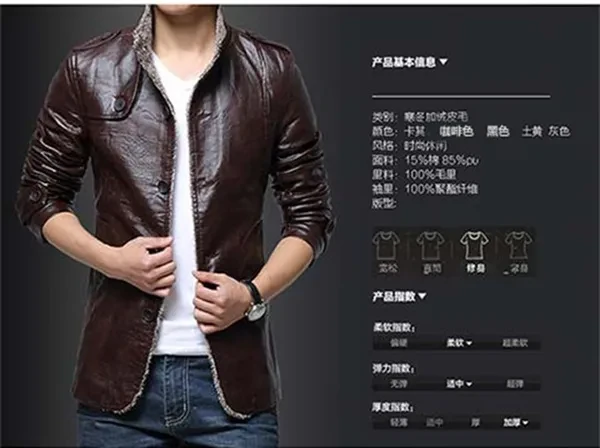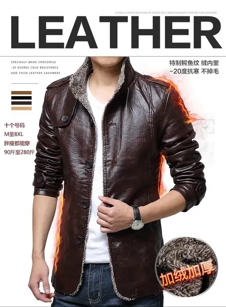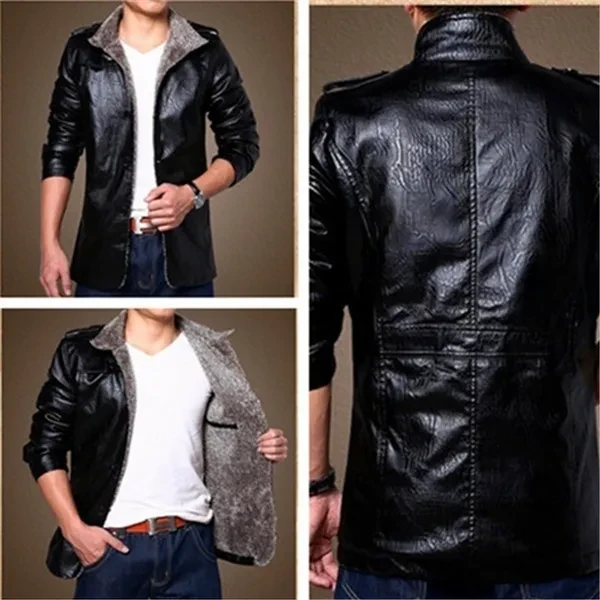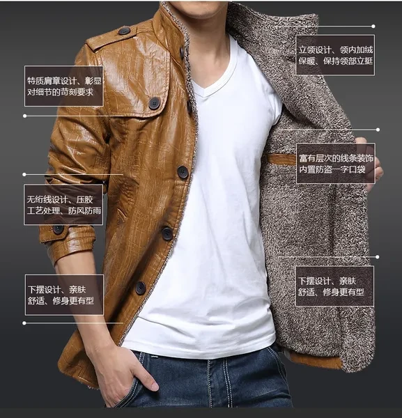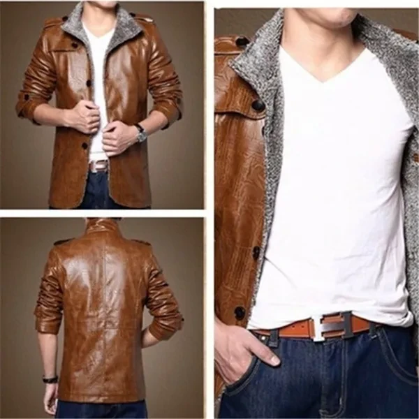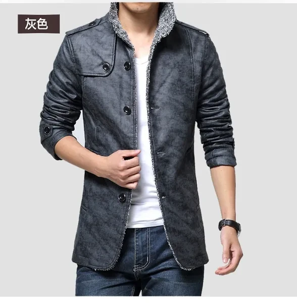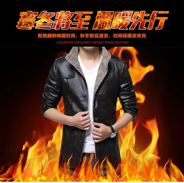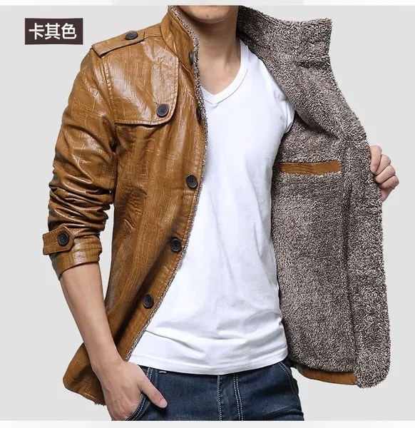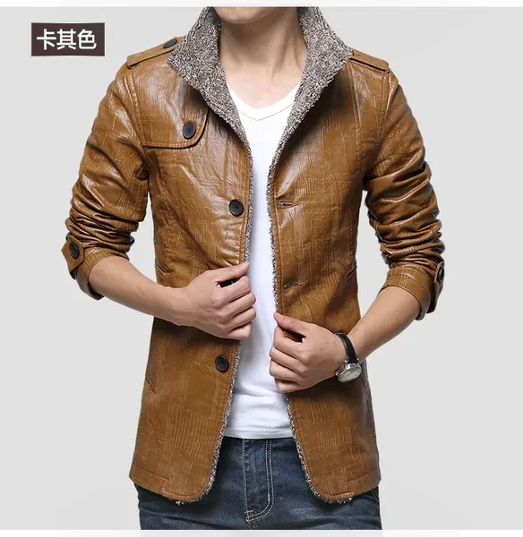 New Hot Sale! Jacket Men Long Sleeve Slim Cashmere Leather Jacket Men Fur Collar Pu Jacket