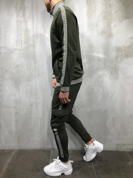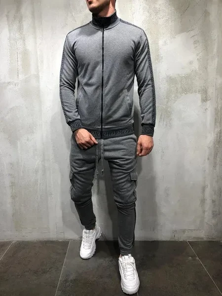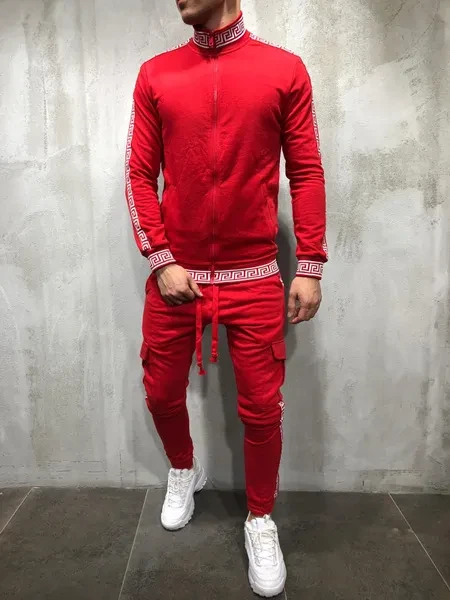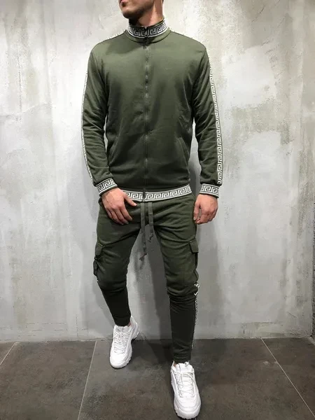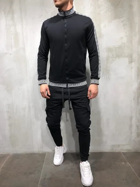New Men's Casual Sportswear Slim Body Fitness Print Trousers Jacket