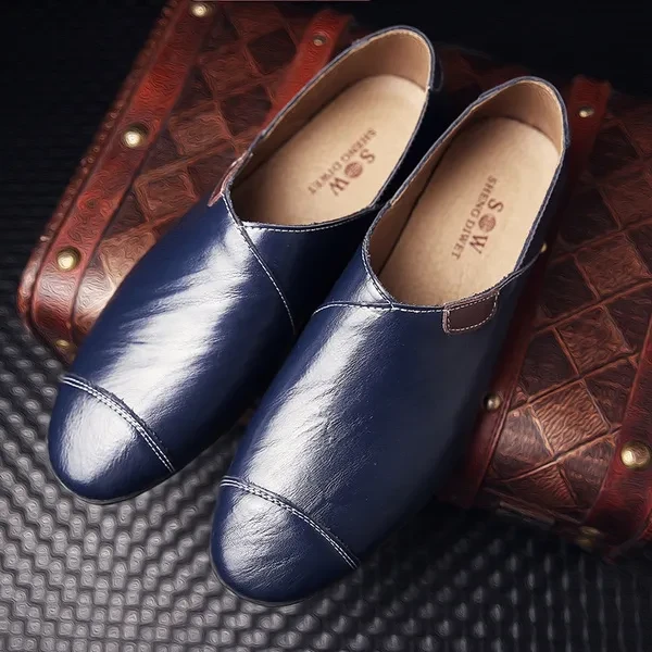 Shoe material: cowhide Sole material: Rubber Style: Leisure Function: antiskid, breathable Color: black, brown, blue Size: 37,38,39,40,41,42,43,44,45,46,47,