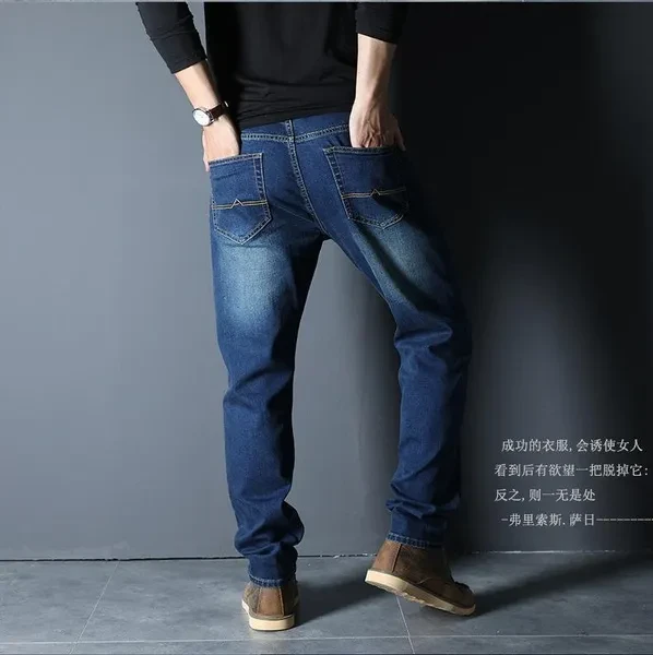 Color: blue, black Product category: jeans Elasticity: high elasticity Length: trousers Waist type: high waist Size: 32, 33, 34, 36, 38, 40, 42, 44.46, 48 Special process: water washing Thickness: ordinary Fabric Name: Cotton Applicable scenario: Leisure Applicable gender: Male Trouser type: straight tube type Suitable season: spring &summer Style details: Pocket decoration Style: Korean version Error range: 1-2cm Hem style: straight Package price: 1 x jean Noticel: 1. This is an Asian size, usually smaller than the US / European size. Please check the size chart carefully before placing an order. 2. If you can't choose the right size, please leave a message in English, telling your height (CM) and weight (kg), and then we will help you choose the right size. 3. The picture shows 100% rear object photography. However, different computers display colors in different ways. The actual projection color may be slightly different from the real object color. 4. Our size table is based on the actual product, please allow 1-3cm difference due to manual measurement. 5.. If you are satisfied with the goods, please give praise. If you have any questions, please feel free to contact us. 6. Welcome to visit our store, maybe you will find other products that you are interested in. Have a good day shopping!