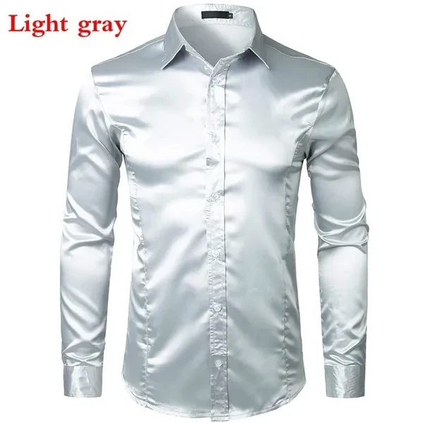 New men's long-sleeved shirt business casual casual fashion shiny long-sleeved shirt lapel button long-sleeved fashion slim business shirt