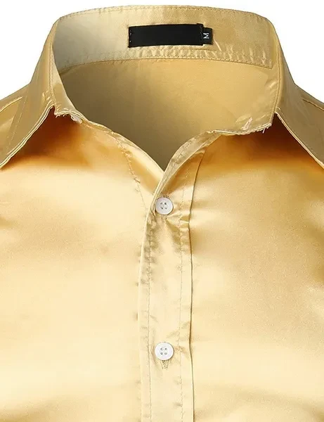 1.Mild Hand wash(Washed with cold water)/Do not bleach/Low iron if necessary 2.Satin Like Feel Silk Fabric/Soft decent Slim Fit/Bright Pure Color/Spread Collar 3.Slim Fit Type/US/EU Size,When you place the order please check the size chart for better fit 4.Disco/Party/Show/Stage/Suitable for a variety of occasions/Perfect for Occasions such as Prom,Christmas Eve,School Dances, Graduation, Choir performances,Musical Band Performances,Communion, Weddings, Bar Mitzvahs and Quinceanera's 5.Color Disclaimer : Due to monitor settings, monitor pixel definitions, we cannot guarantee that the color you see on your screen as an exact color of the product. We strive to make our colors as accurate as possible. However, colors are approximations of actual colors
