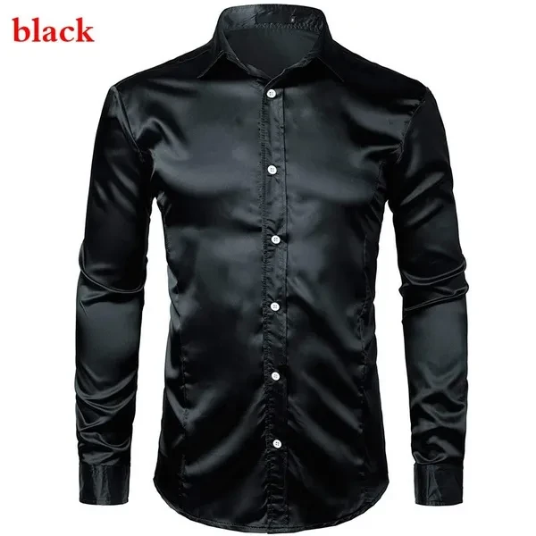 New men's long-sleeved shirt business casual casual fashion shiny long-sleeved shirt lapel button long-sleeved fashion slim business shirt