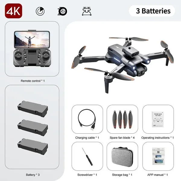 1. The front lens is placed with wide-angle 4/6K high-definition WIFI, the bottom high-definition lens with optical flow can switch the camera angle, the servo pan tilt is designed to increase stability, and the EIS electronic anti shake is added to make the photo line clearer