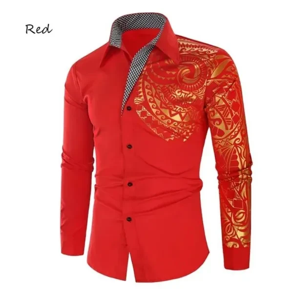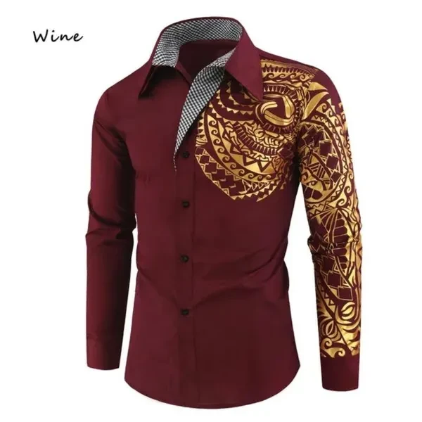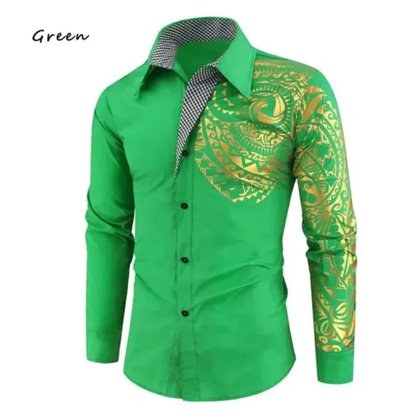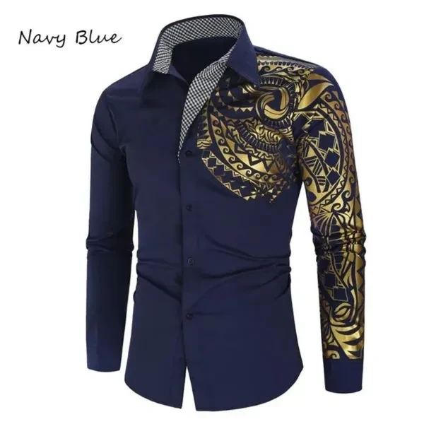 New Slim Fit Fashion Gold Totem Print Summer Long Sleeve Shirt Men's Fashion Men's Wear