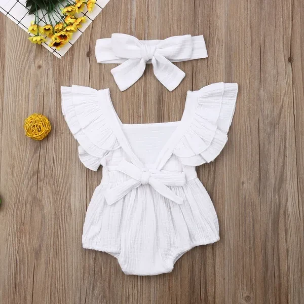 Hello! Welcome to our store! Quality is the first with best service. customers all are our friends. Fashion design,100% Brand New,high quality! Style: Fashion Material: Cotton Blend Color: As picture Size:70/80/90/100 There is 2-3% difference according to manual measurement. Please check the measurement chart carefully before you buy the item. Please note that slight color difference should be acceptable due to the light and screen. What You Get:1 x Romper + 1 x Headband
