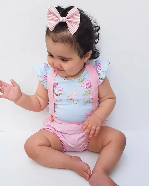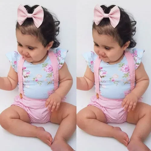 Hello! Welcome to our store! Quality is the first with best service. customers all are our friends. Fashion design,100% Brand New, high quality! Material: Cotton Blend Color: As picture show Size: 70 80 90 100 Attention: If your kid is chubby, we recomend choosing a larger size. There is 2-3% difference according to manual measurement. please check the measurement chart carefully before you buy the item. 1 inch = 2.54 cm Please note that slight color difference should be acceptable due to the light and screen. What You Get: 1 x Girls Romper + Pants +Headband