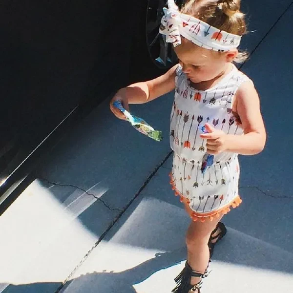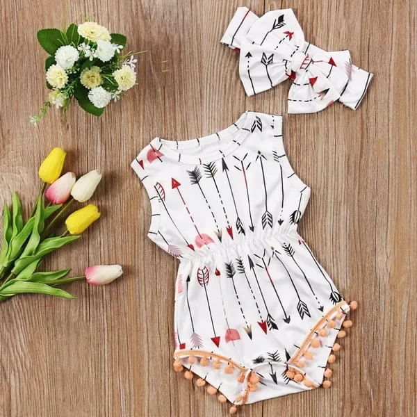 Newest Fashion Baby Girls Romper !! High quality and Brand new 100% Main Color: AS The Picture New in Fashion Material: Cotton Blend Attention plz: If your kid is chubby, we recomend choosing a larger size, thanks. Please kindly refer to your kids actual height and the size chart before buying/bidding. Thanks. Package included: 1x Romper & 1x Headband