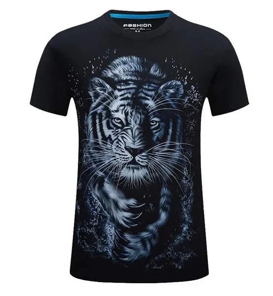 Novelty 3D T Shirt Tiger Printed T-shirt Men Cotton Black Male T Shirt Men's Casual Tee