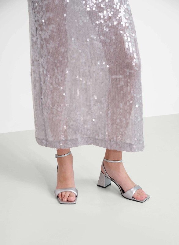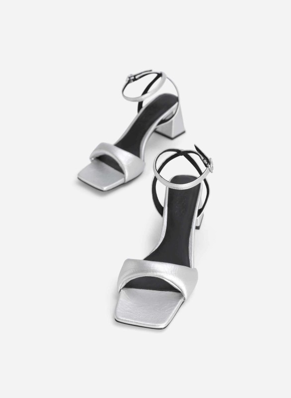 Padded Strap Square-Toe Sandals - PUM 0785 - Silver