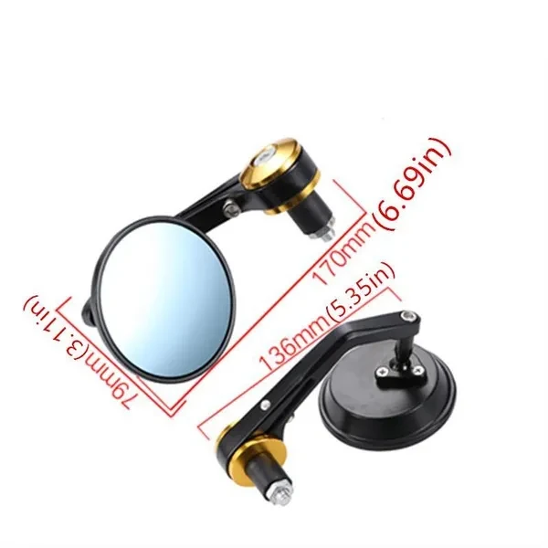 Material:CNC Aluminum Quantity: 1 pair (Left and Right) Barend size:7/8" (not 1") Features: 1.Exquisite and durable 2.Anti-glare mirror for clear visual effects during the day and night. 3.Adjustable mirror angle, up and down, left and right. 4. Stunning blue tinted mirror, avoiding being dizzy during driving. Fitment: Universal fits all motorcycles 7/8" 22mm bar end. Please make sure the item fit your bike before you buy it, thanks!