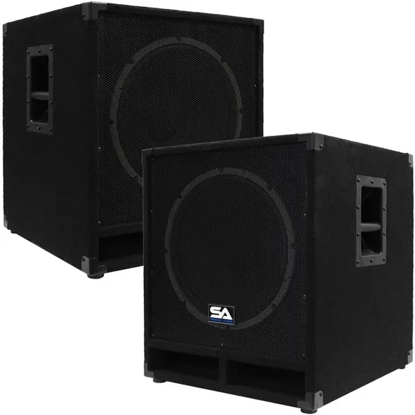 MODEL: Baby Tremor PW (Pair) CONTENTS: Pair of Powered 15" Subwoofer Cabinet CONDITION: New APPLICATION: Subwoofer / PA Subwoofer / DJ Subwoofer ACTIVE/PASSIVE: Powered / Active WOOFER: 15" WOOFER SPECS: 70 oz Magnet and 3" Voice Coil POWER: 300 Watts RMS; 600 Watts Peak FREQUENCY RESPONSE: 35 Hz - 800 Hz SENSITIVITY: 98 dB SPL: 108 dB - Continuous LPF (LOW PASS FILTER): 40 Hz - 300 Hz CONNECTORS: Two Line Input/Output - XLR Combo / Male XLR NOMINAL IMPEDANCE: 8 Ohms PORTS: Yes GRILL: Full Metal Grill HANDLES: Recessed Metal COVERING: Black Carpet with Black Metal Corners ENCLOSURE: 5/8" Plywood Construction POLE MOUNT: Yes HEIGHT: 23.25" WIDTH: 20.75" DEPTH: 19.75" WEIGHT: 73 lbs per Cabinet WARRANTY: One Year Warranty SPECIAL FEATURES: Can be Daisy Chained SPECIAL FEATURES: 3 Channel Amplifier Built In AMPLIFIER TYPE: Class AB POWER SELECT: 110V-120V or 22V-240V Power Supply SPECIAL FEATURES: Two Channel Satellite Power Output - 8 Ohm - 2 x 150 Watts SPECIAL FEATURES: Balance, Clip Indicator Light, Power Indicator Light SPECIAL FEATURES : Separate Sub and Satellite Volume - Switch for 200 Hz High Pass Filter