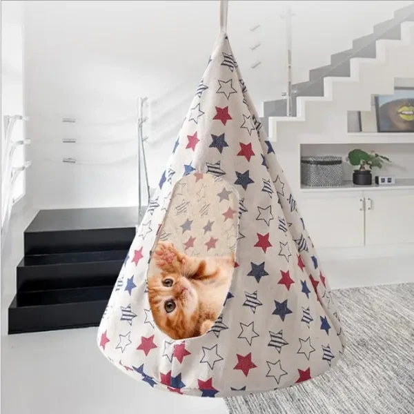 Feature High quality and environmentally friendly linen fabric, soft and comfortable, breathable and durable.; Easy to wash,and you can choose hand washing and machine washing.; Portable and hangable pet nest, convenient and practical, foldable; Pets can be shaken like swings on top to add fun; Suitable for cats, small dogs, and other small pets Specifications Material:Linen + sponge Shape:Conical Specifications: 1 , 2 , 3 , 4 , 5 Size:S,M S:35x35x45cm(13.4x13.4x17.3inch) M:46x46x60cm(17.7x17.7x22inch) Package include: 1x PC