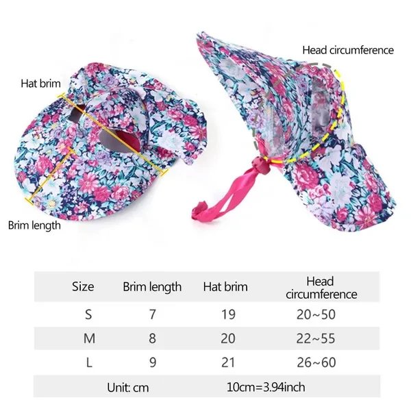 Features: Pet floral hat, large brim, lace-up style, adjustable size. The large brim design protects your pet's eyes from for sun damage. Let your pets enjoy a variety of outdoor activities in the for sun and share your meaningful moments. Make your pet look like a princess/little gentleman, different and glamorous. The for sun hat has two small holes to allow the pet's ears to be exposed, and the adjustable strap design is easy for pets to wear. Specifications: Material: Polyester Color: blue/pink/black S for head circumference: 20~50cm/7.87~19.68inch for M for head circumference: 22~55cm/8.66~21.65inch L for head circumference: 26~60cm/10.24~23.62inch Note: Please allow 1-2cm errors due to manual measurement, make sure that you do not mind before you order. Due to the difference between different monitors, the picture may not reflect the actual color of the item. Package includes: 1x Hat