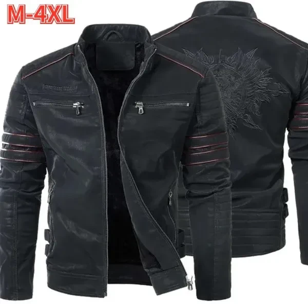 Plus Size Jacket Men's Fashion Leather Jacket Zipper Coat Leisure Jacket Embroidery Jacket 3 Colors
