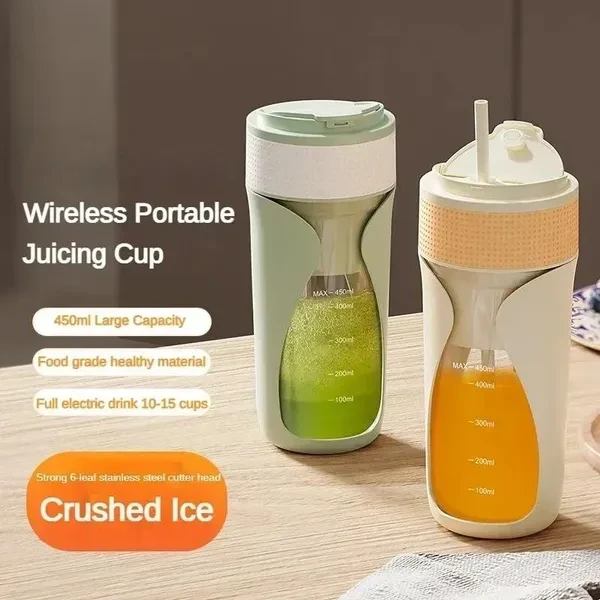 Portable Electric Juicer 450ml USB Rechargeable Fruit Juice Machine Wireless Fruit Blender Smoothie Blender Home Kitchen Gadgets