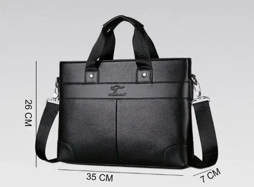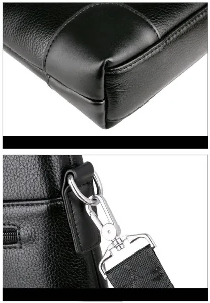 Material: High Quality PU leather Lining texture: polyester Style: Business Bag shape: cross section square Package internal structure: ID bag, mobile phone bag, zipper pocket, computer pocket Strap root number: single Lifting parts: telescopic handle Opening method: zipper Outer bag type: inner patch pocket Size: 26*37*7cm/ (suitable for 14 inch laptop) Color: Black/Brown ​Note: due to the different display and light, there may be a slight color difference