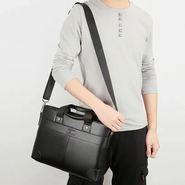 Portable Men's Shoulder Crossbody Bag Business Briefcase Leather Laptop Handbag Casual Travel Bag