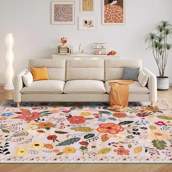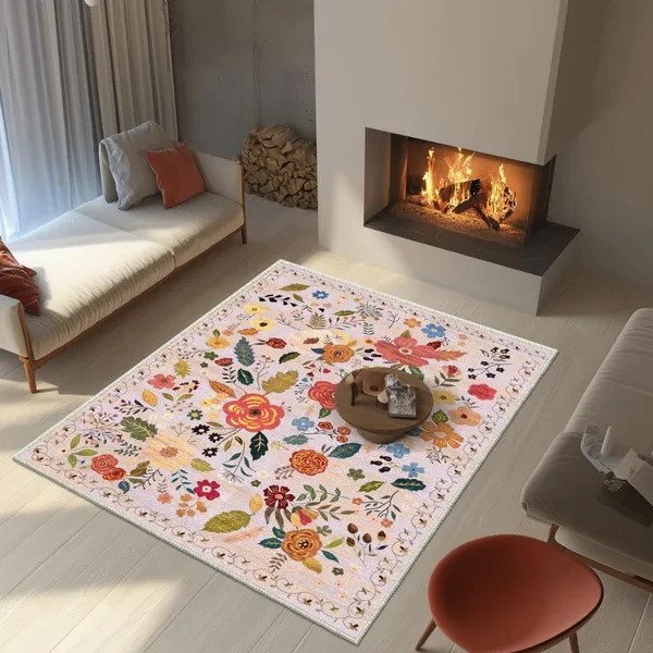 Regional Carpet Living Room Carpet Soft Machine Washable Bohemian Farmhouse Neutral Anti Staining Indoor Carpet Bedroom Dining Table Home Office Decoration