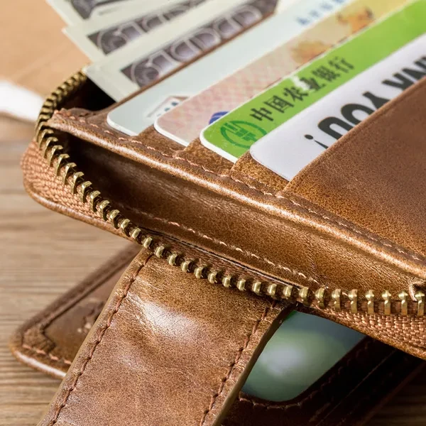 Men's Leather Wallet: Genuine leather,with breathable polyester lining. Size and Color : 4.72(L)*3.54(W)*1.18(H)(in). Weight: 015kg. Black, brown and coffee, 3 different colors for your needs. (Please allow 0.3"-0.9" in size error due to manual measurement.) Safety, Privacy and Security : Our wallets are equipped with advanced RFID SECURE Technology, a unique metal composite, protect the valuable information stored on RFID chips from unauthorized scans. Men Wallet with Zipper : Large Capacity: 12 card slots + 2 cash compartments + 1 driver's license / ID/ photo window + 1 zip coin pocket. It’s easy to carry all your important cards and meets all your daily needs. !!!Please pay attention that this wallet is not a slim / Minimalist style, if you are looking for something slim / thin, this one might not be the right one for you. The wallet is large capacity, but not bulky. It fits in your back/front pocket. Features : This men wallet is both fashionable and functional. Features the special design and the nice structure. Hope this wallet could be your loyal friend keeping company with you for every adventure both near and far.