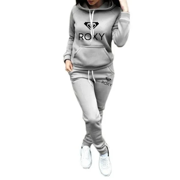ROXY-Womens NEW Women Fashion Two Pieces Tracksuit Set Printed Sport Suit Autumn/winter Hoodie + Trousers Set Jogging Suit Long Sleeves Tops+ Long Pants Suit Plus Size S-4XL