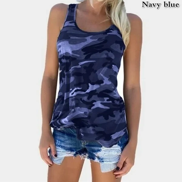 (S-5XL) Women Summer Fashion Print Top Casual Army Camo Camouflage Tank Top Sleeveless O-neck Slim T-Shirts Plus Size