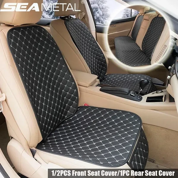 SEAMETAL Car Seat Cover PU Leather Seat Covers For Car Seat Protector Four Seasons Car Seat Cushion Pad Front/Rear Seat Covers Features: 1. High quailty leather, Fine and exquisite hand-made craft; 2. Added backrest to provide a full coverage. 3.Comfortable and breathable, give protection from long sitting problems; 4. Storage bag design, lightweight & easy to take 5. Selection of high quality chuck accessories for durability Specifications: Color: Black / Black&White/ Black&Red Material: Leather Type: Front seat cover/Rear seat cover Feature: Universal for all the cars Size: As the picture shown (Please allow 2-3% deviation due to manual measurement and make sure you do not mind before you order it.) Noted: -1 Front Seat has two part -The pictures are for reference only. The actual product shall prevail.Your satisfaction is our utmost concern. -Please contact us to better resolve any issue before leaving any neutral or negative feedback. -Thanks a lot! Package: 1pc front seat/ 2pcs front seat/1pc rear seat