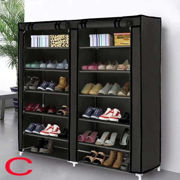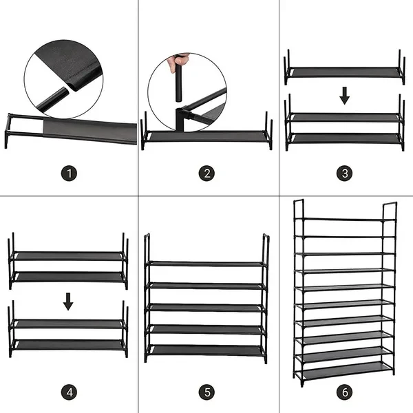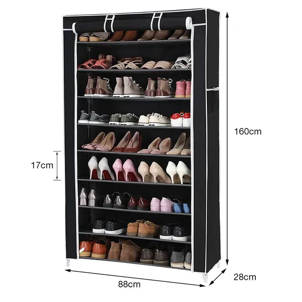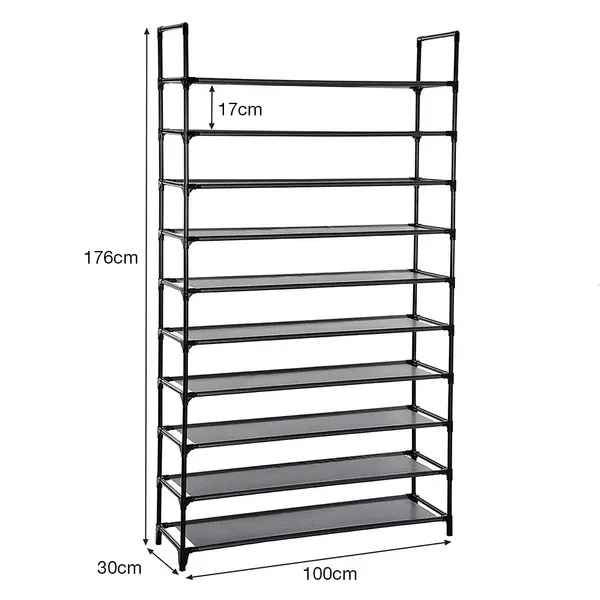 Features: styles A: Non-woven 9-story shoe cabinet - Material: metal tube, non-woven cover - Tube thickness 0.22mm Tube diameter 12mm - Expanded size 88*28*160cm Packing: 90*20*10 cm Wide range of uses - Large capacity, easy assembly and disassembly, space saving, very good appearance, beautiful space, very good extra product, suitable for your room, living room, balcony, storage room or garage. Stable metal frame - Metal structure is rust-proof, very strong and stable. Each wall can withstand loads of up to 5 kg under a uniform load. The maximum load of the boom is 25 kg to better meet your needs. Non-woven resistant cover - Covers 95G of non-woven fabrics, breathable, moisture-proof, flexible, lightweight, non-toxic, odorless. Rolling Doors - Designed with 2 rolling doors, it is easier to open and close doors and dust to protect your belongings. Comes with a Velcro and zip to prevent the door from falling. Sewing zipper for more wear-resistant sturdy plastic parts - good quality, durable, sturdy and odorless plastic parts, heat resistant and easy to assemble Details: - Tired of stacking your belongings anywhere, never finding a place for them? This beautiful fabric wardrobe may be the solution! With its perfect exterior finish, it will fit a small room or match the décor of your home. - This wardrobe has a wardrobe and a shelf for storing clothes: your pants, t-shirt or hanging your shirt without creases. You can also store it in the living room, bedroom, storage room or garage as an extra storage space for jackets, bags, scarves, gloves, hats, etc. - Made of non-woven fabric and fixed by metal tube, the cabinet is stable and can be hung. It is easy to clean and move. This is definitely a good choice for storing accessories. styles B: 10-layer black shoe rack Features: - Material: metal tube, Non-woven cover - Tube thickness 0.22mm Tube diameter 12mm - Expanded size 100*30*176cm Packing: 90*20*6 cm note: - If it is difficult to insert a pipe into a plastic part, it is recommended to put the plastic part in hot water. - To extend the shelf life, do not expose the product to the sun for a long time. - Store the product in a cool, dry place to avoid mold. - Do not disassemble after assembly.