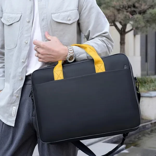 <p>Features: Perfect for students, professionals, and anyone who needs to carry their laptop with them on the go. Keep your laptop safe and dry with our water-resistant computer bag designed to fit laptops up to 17.3 inches. Made from durable Oxford cloth, this bag is tough- enough to withstand daily wear and tear while keeping your laptop protected from spills and splashes. Whether you're commuting to work or school, traveling, or just running errands, this bag has plenty of room for all your essentials and a padded compartment to keep your laptop secure. With its sleek- black design and practical features, such as multiple compartments and adjustable straps, this bag is both stylish and functional, making it an essential accessory for anyone who needs to keep their laptop safe and organized. Specifications: Material: Oxford Cloth Size: 15.6in/17.3in Color: Black/Gray Package Includes: 1x Briefcase note: Please allow 1-3cm errors due to manual measurement, make sure that you do not mind before you order. Due to the difference between different monitors, the picture may not reflect the actual color of the item. </p>