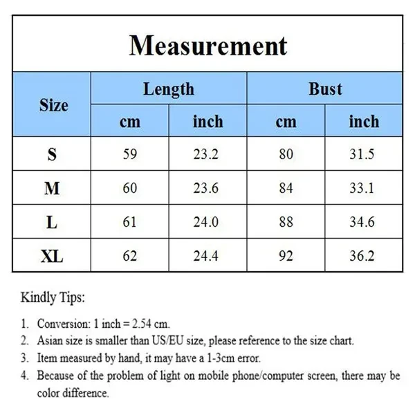 Hello!Welcome to our store! Package Include: 1x Vest Color: Grey, white, black, purple, wine red Material:Milk shreds Attention: This is Asian size usually will get One size smaller than US size. please choose larger and check carefully before order Size:S,M,L,XL S : Dress length:51cm, bust : 80cm M :Dress length:53cm, bust : 84cm L : Dress length:55cm, bust : 88cm XL : Dress length:57cm, bust : 92cm 1inch=2.54cm There are 2-3% difference according to manual measurement. Please check the measurement chart carefully before you buy the item. *As different computers display colors differently, the color of the actual item may vary slightly from the above images, thanks for your understanding :)