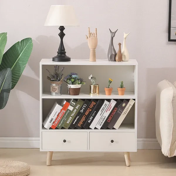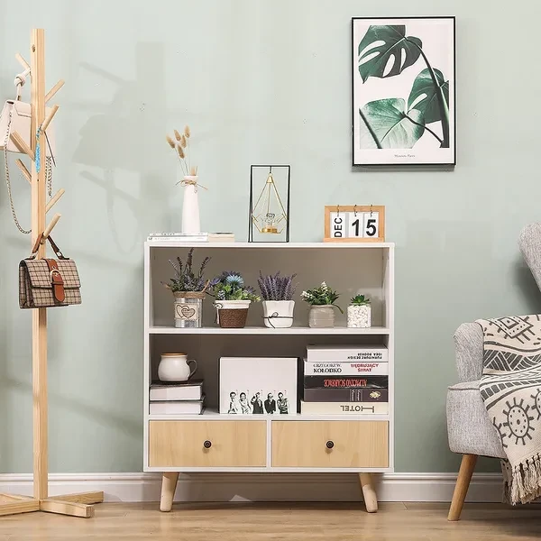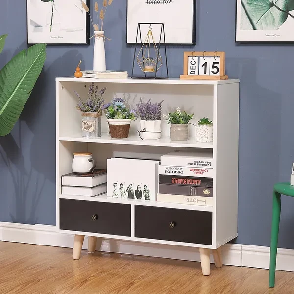 Scandinavian design invites you into your home with the EFFIE bookcase in white and gray wood. The Nordic clean lines of this bookcase will create a warm and cozy atmosphere in your living room! This superb bookcase, with neat finishes, is made of particle board You just have to take advantage of the storage spaces offered by this library and highlight your decorative items! Available in different colors on our online store. Package Included: 1XCabinet