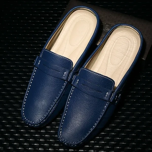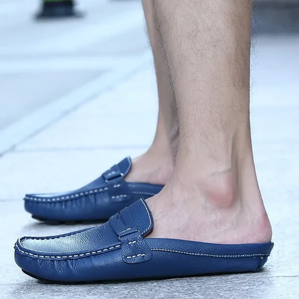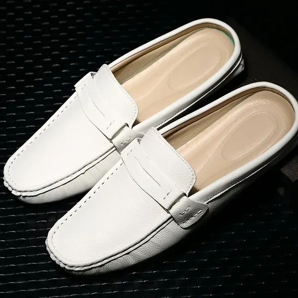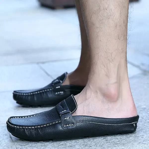 Summer Male Shoes Casual Luxury Brand Mens Penny Loafers Leather Half Slipper Slip on Driving Shoes Men Moccasins