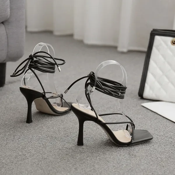 Summer New Fashion Pinch Narrow Band Women Gladiator Sandal Ladies Square Open Toe Ankle Buckle Strap Stiletto Heels Sandals