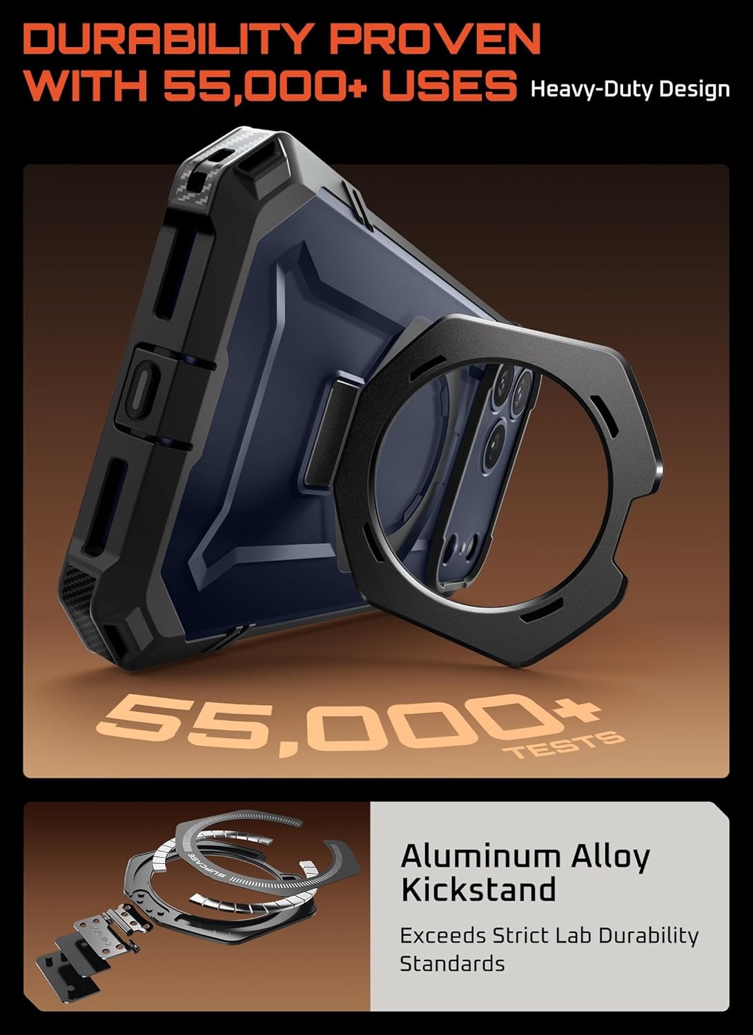 • [Kickstand & MagSafe Features]: Built-in aluminum alloy kickstand provides multiple viewing angles. N52 strong magnet with up to 1800g magnetic force ensures seamless compatibility with MagSafe accessories.