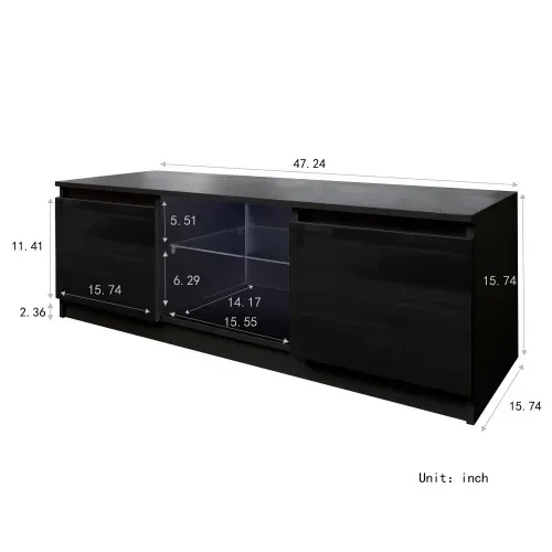 TV Cabinet Wholesale, Black TV Stand with Lights, Modern LED TV Cabinet with Storage Drawers, Living Room Entertainment Center Media Console Table