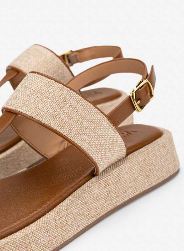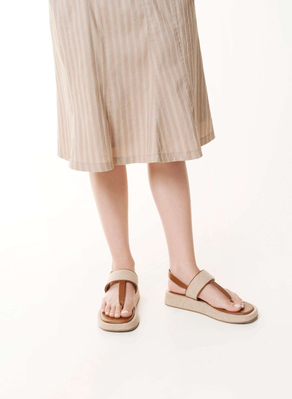 Tweed T-straps Sandals Slippers - SDL 0349 - Brown