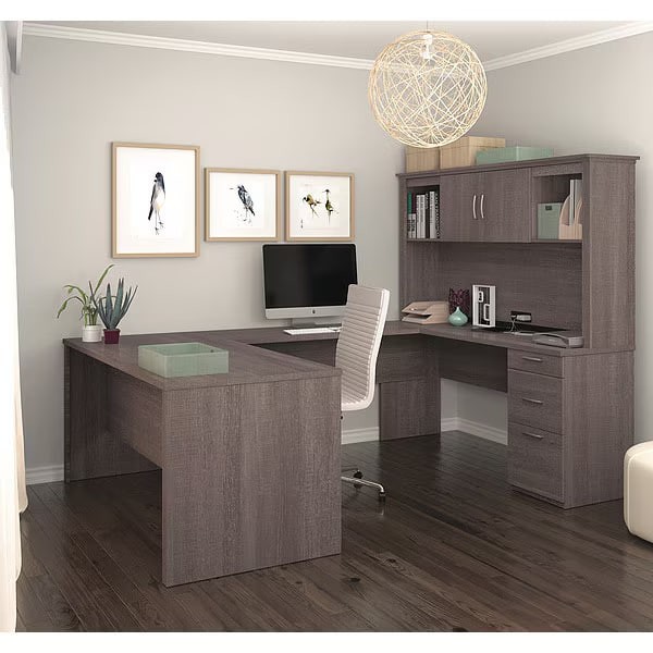 U Shaped Desk U-Shape Desk, 95-1/2" D X 66-1/2" H, 66" W X Bark Gray