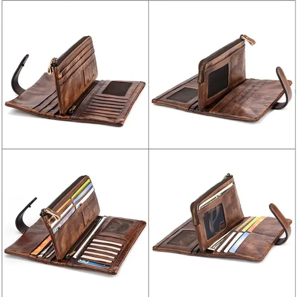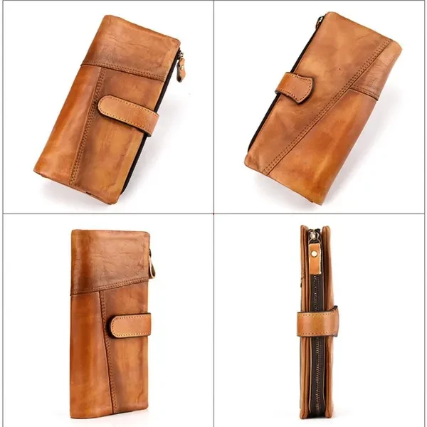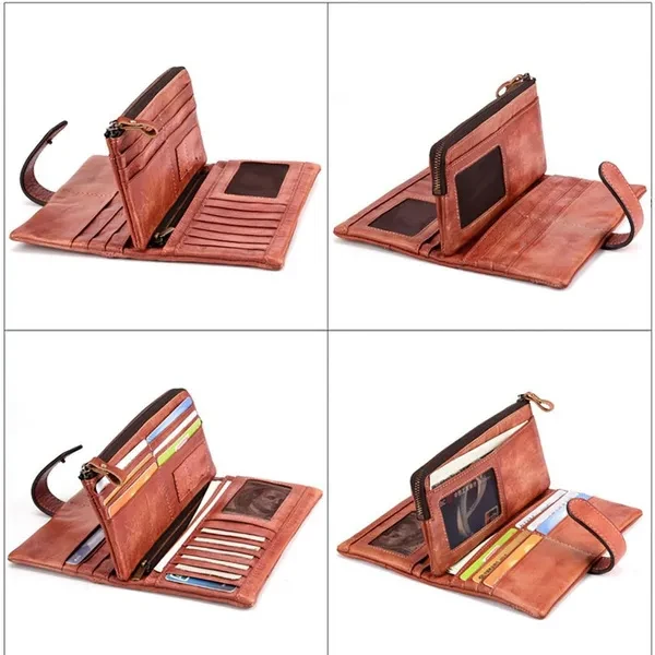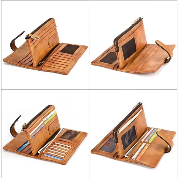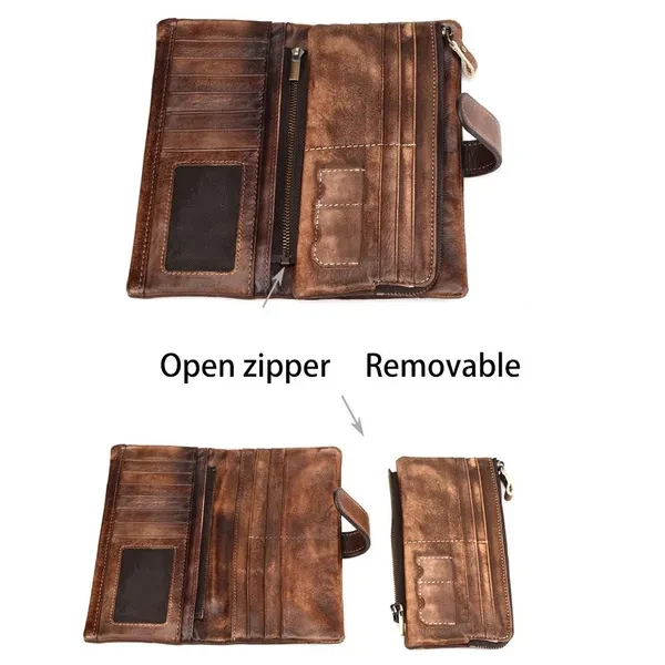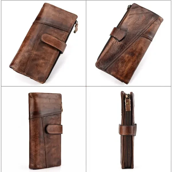 Leather lining;Zipper opening and closing Versatile & Special: Size: 9.5cm(W)x2cm(D)x19.5cm(L)(3.74"x0.98"x7.67") approx; weight: 150g (5.29oz)approx; The leather wallet is multifunctional with 18 card slots,2 ID windows,4 full-length bill compartments,1 zipper pocket,closed with snap. Roomy enough for fitting plenty of cards, change and dollar bills, coins, keep them well organized. Durable & Vintage Leather Long Wallet: This long wallet is made of cowhide genuine leather, classic and retro style, 18 card slots, top-quality zippers, detachable sturdy wrist strap, fabric lining, zip closure, leather and excellent workmanship, contemporary type design, classic, vintage, fashion and luxury, which shows your outstanding temperament when business, office, work. Designed for comfort: Durable, good construction, fashionable, carry all and comfortable carry, organizers, with wristlet strap, easy to carry, super simple, fashion and classic, brings you more fashion sense and happiness to carry it all the time when business travel outdoor camping Casual, perfect gift for Christmas, New Year, Thanks Giving Day, Groomsmen, Birthdays, Father's Day. Multipurpose use: This stylish long wallet can used as a wristlet bag, clutch organizer, clutch pack, hand bag, business bag, business wallet/purse, fit very well for adult men or women. perfect for busiest, outdoor, travel, camping, shopping, work, etc, not big, easy to put it in you backpack, luggage bag or suitcase when you travel.