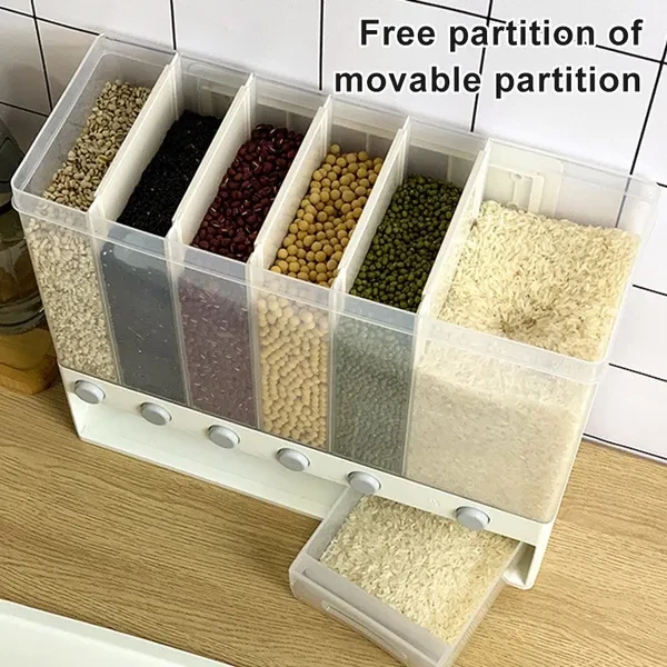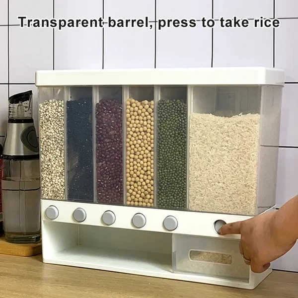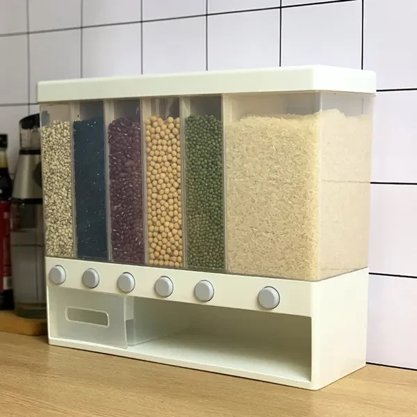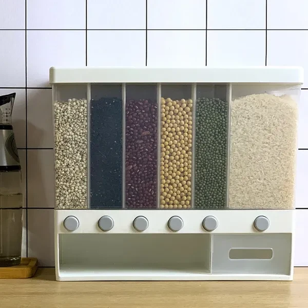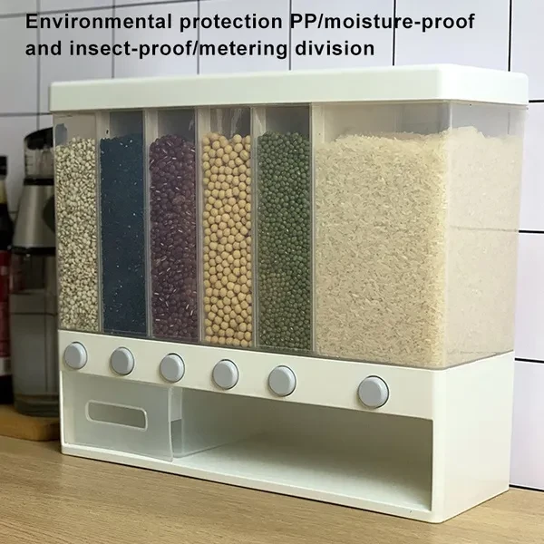 Wall-mounted Dry Food Dispenser Rice Bucket Multi Compartments Automatic Metering Storage Box Sealed Grain Container