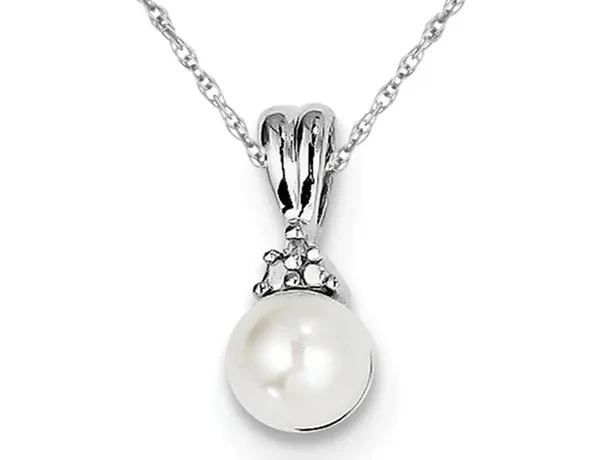 White Cultured Freshwater Pearl 6mm Pendant Necklace in Sterling Silver with Chain A white round cultured freshwater pearl sits in the embrace of the sleek sterling silver with a matching chain. Pearl is the birthstone for June. Beautifully crafted in 0.925 sterling silver with a Polished Finish and includes the matching chain Stone Type: Pearl; Color: White; Quantity: 1; Irregular Shape; Dimensions: 6 mm; Post/Glue Setting This item ships directly from the USA. If you are not completely satisfied, simply return for a 100% refund Pearl Gemstone is the Birthstone for the Month of June This Pendant Necklace is the perfect gift for any birthday, anniversary, holidays, thank you, thinking of you, or for any reason at all SKU: 62QGG3198PF
