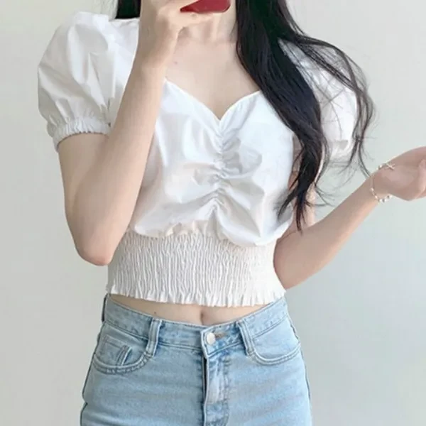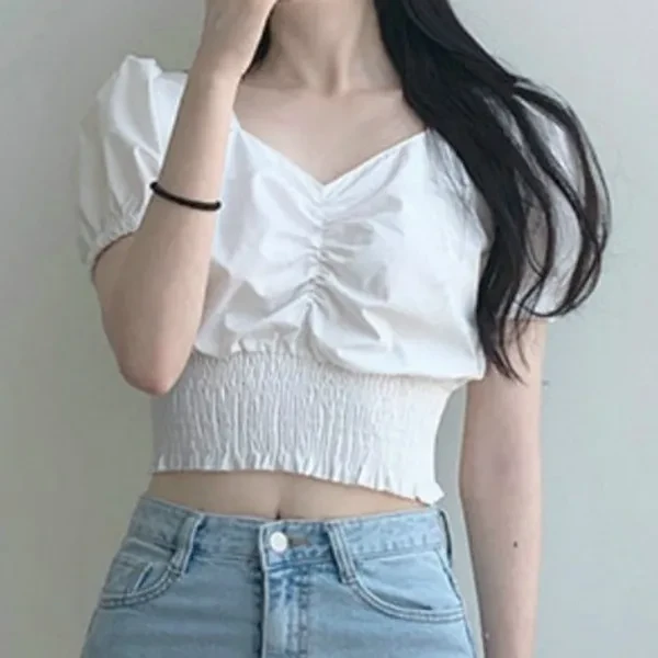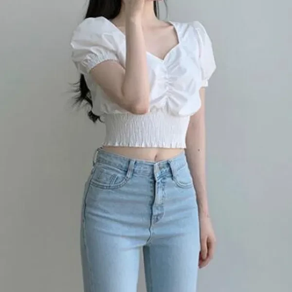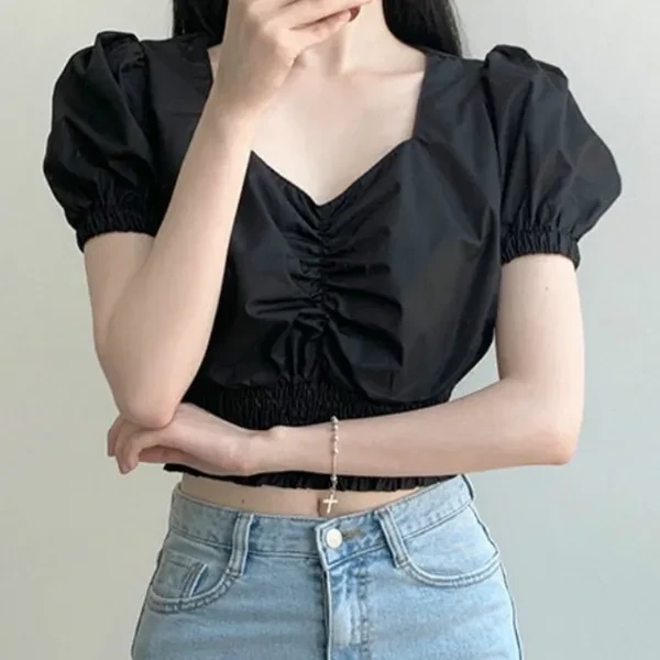 Women Basic T Shirt Crop Top Lolita Bubble Short Sleeve Blouse Punk Gothic Victorian