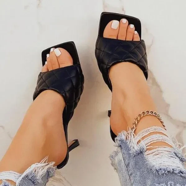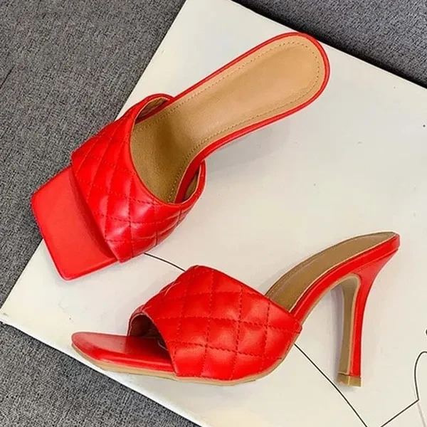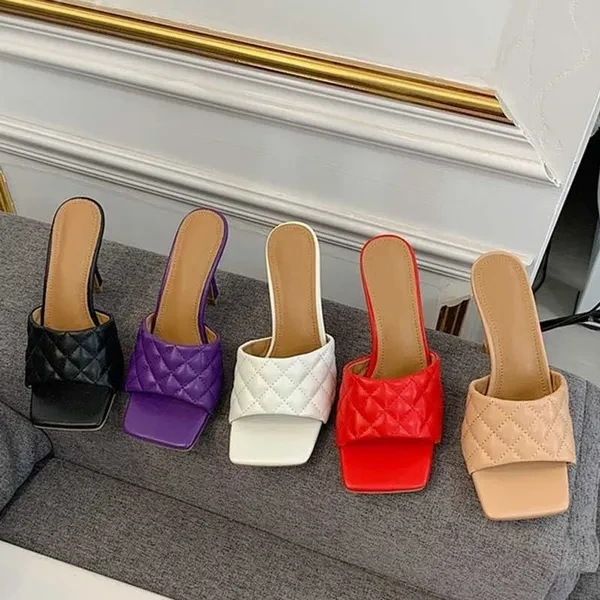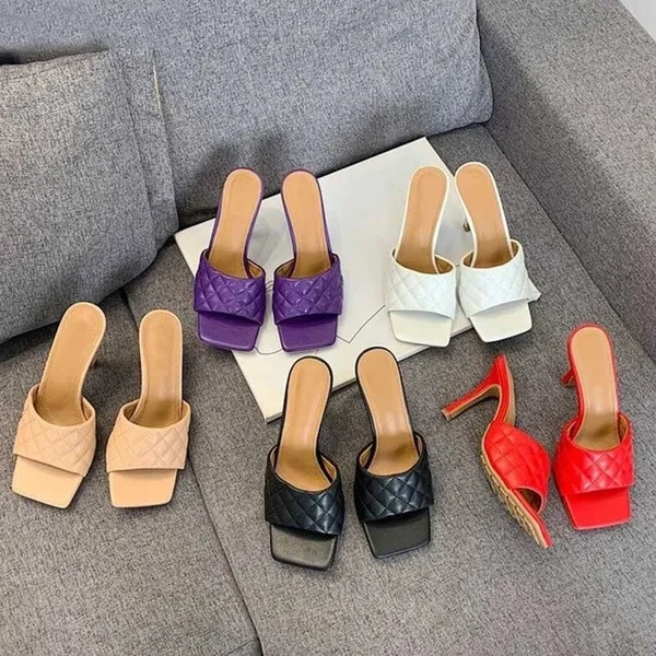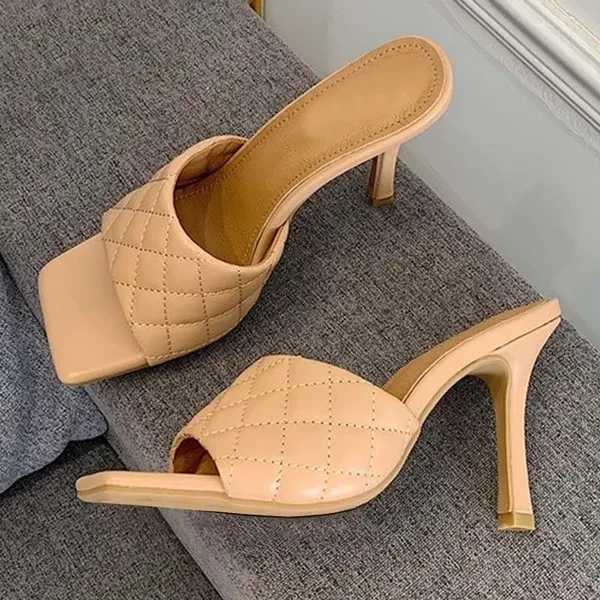 Women High Heel Sandals Summer Stilettos Slippers Fashion Ladies Design Square Toe Stiletto Heels Wedding Shoes