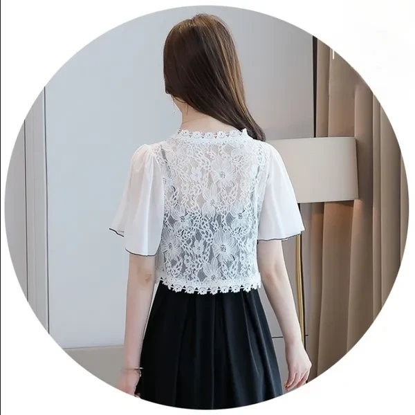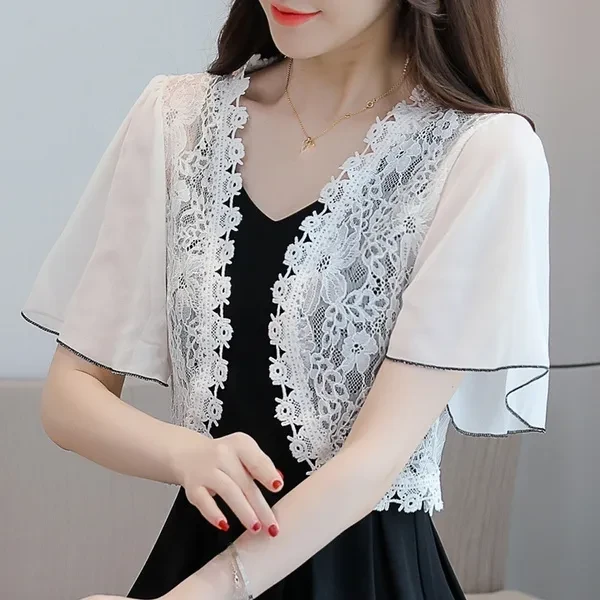 Women Lace Shawl Hollow Out Shrug Bolero Capelet Cardigan Cape Short Sleeve Summer Tops
