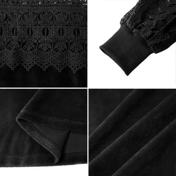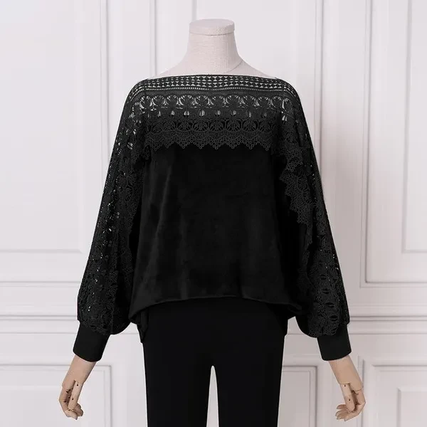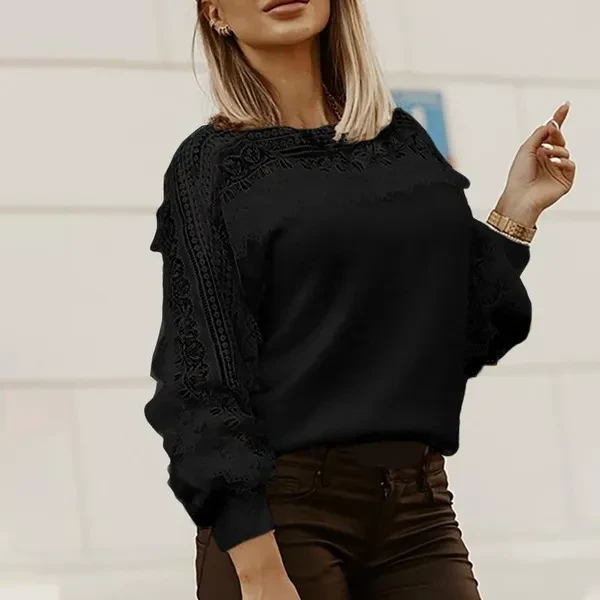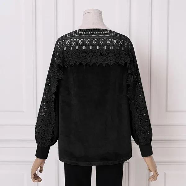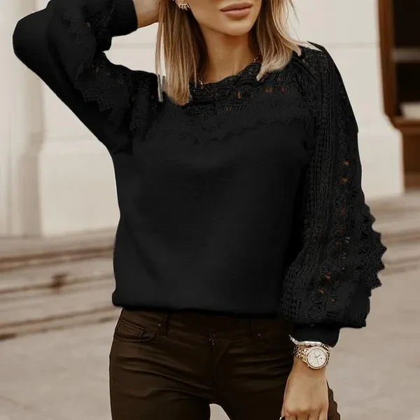 Women Long Sleeve Sweater Knitted Blouse Lace Patchwork Hollow Out Pullover Tops Casual Loose T Shirt Plus Size