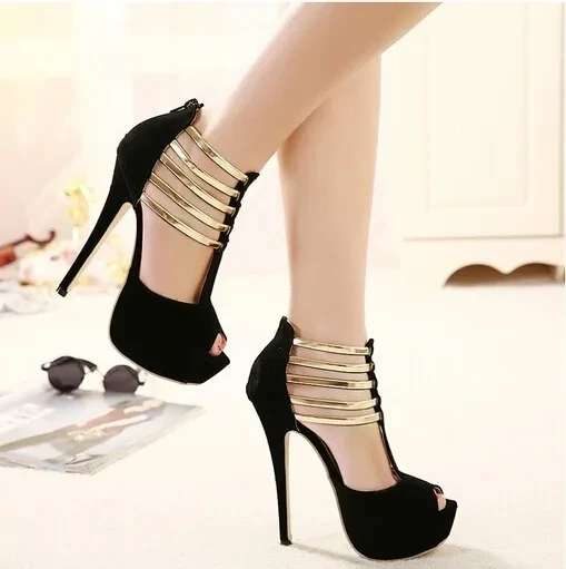 Material:Nubuck leather Heel:14.5cm Platform:4.5cm Size:US5-US12 Color:black,red Every girl should have a pair of beautiful high heels, I hope our shoes can bring you confidence and happiness!Wish you can like it and keep a good mood every day!