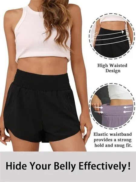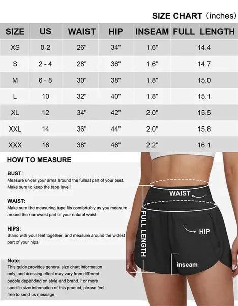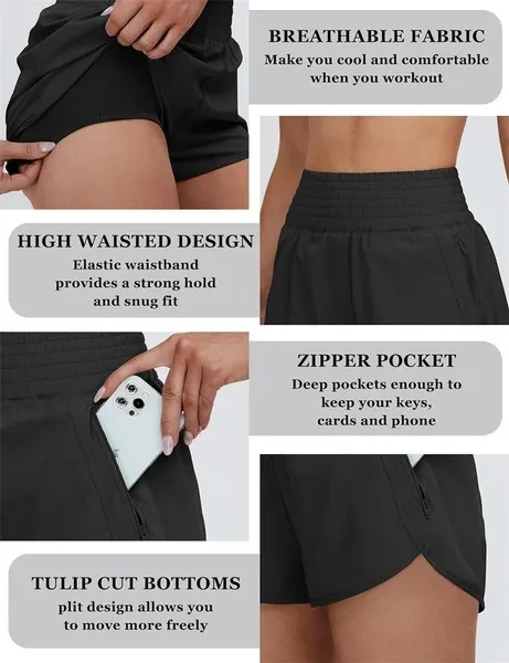 Quick-Dry Fabric: The sport shorts for women, is made up of 95%Polyester and 5%Spandex, which will keep you cool and comfortable when you exercise. Double Layer Design: The high waisted shorts for women with Outer layer side split design, which offer breathability and wider range of motion.it also design with Inner layer, which provide elastic support and protective coverage. Zipper Pocket: This womens gym shorts with a zipper phone pocket on the left, it can hold plus phone well when you workout. Occasions: The running shorts with liner is perfect for exercise, yoga, cycling, volleyball, tennis, beach, swim,daily, biking, jogging, mountain,fitness,training,summer. Size Guide: Please choose your size refer to the last photo size chart. Pant length: 3/4 pants Waist type: high waist Style: Shorts Thickness: Medium Applicable gender: Female Style type: Comfortable and casual Style: Casual style