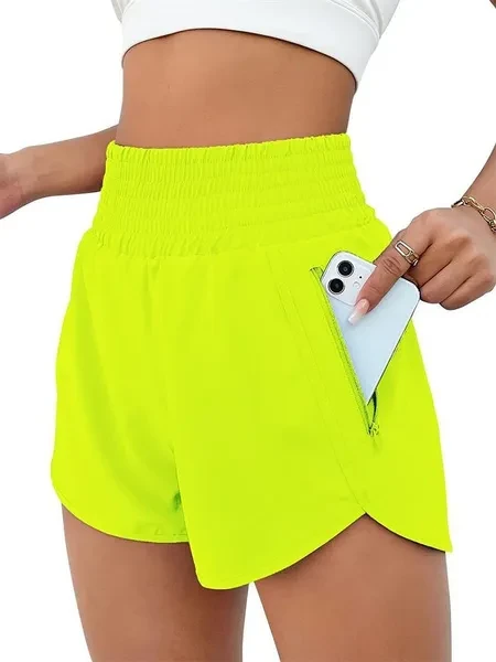 Women's Athletic Shorts High Waisted Running Shorts Pocket Sporty Short Gym Elastic Workout Shorts