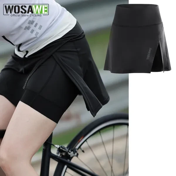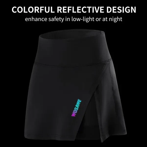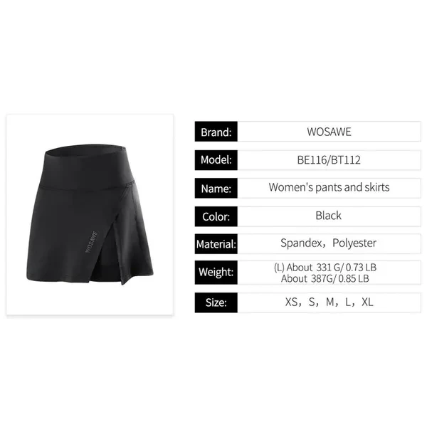Description: WOSAWE Summer Women Cycling Skirt Bike Shorts 2 in 1 Tights Quick Dry 3D Gel Padded Shorts Product Features: Back zipper pocket Phone pockets on both sides Elastic and breathable fabric Built-in silicone sponge cushion Non-slip leg strap Iridescent reflective logo Four needles and six threads sewing process Package Included: 1 x Women Cycling Skirt Shorts Specification: Name: Cycling Skirt Shorts Gender: Women Colour: Black Style: Skinny Size: XS,S,M,L,XL Material:Polyester,Spandex Weight: Application: Cycling, Running, Hiking,Training, Spinning and other outdoor sports