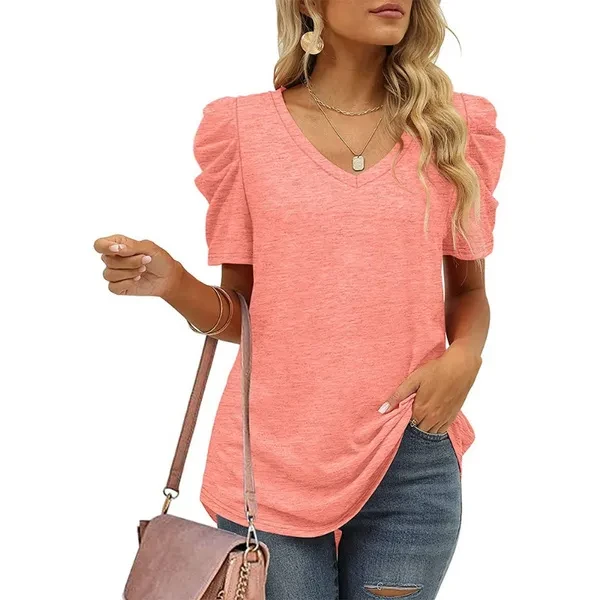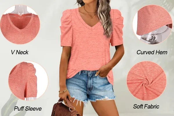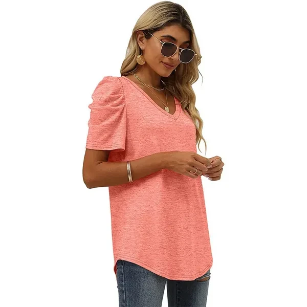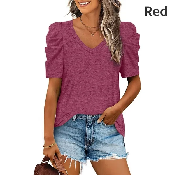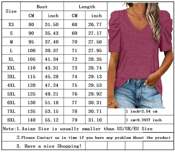 XS-8XL Plus Size Fashion Clothes Women's Casual Summer Tops Puff Short Sleeve Tee Shirts Cotton Pullovers Blouses Ladies Fashion V-neck Solid Color Loose T-shirts Blouse Tops